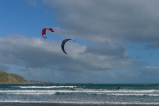 What is good about Lyall Bay is that recently the beach has become popular with Kit Surfers and Wind Surfers. On many a good blustery day/evening when the conditions are right you will a good group of Kite and Winder Surfers out in the water.