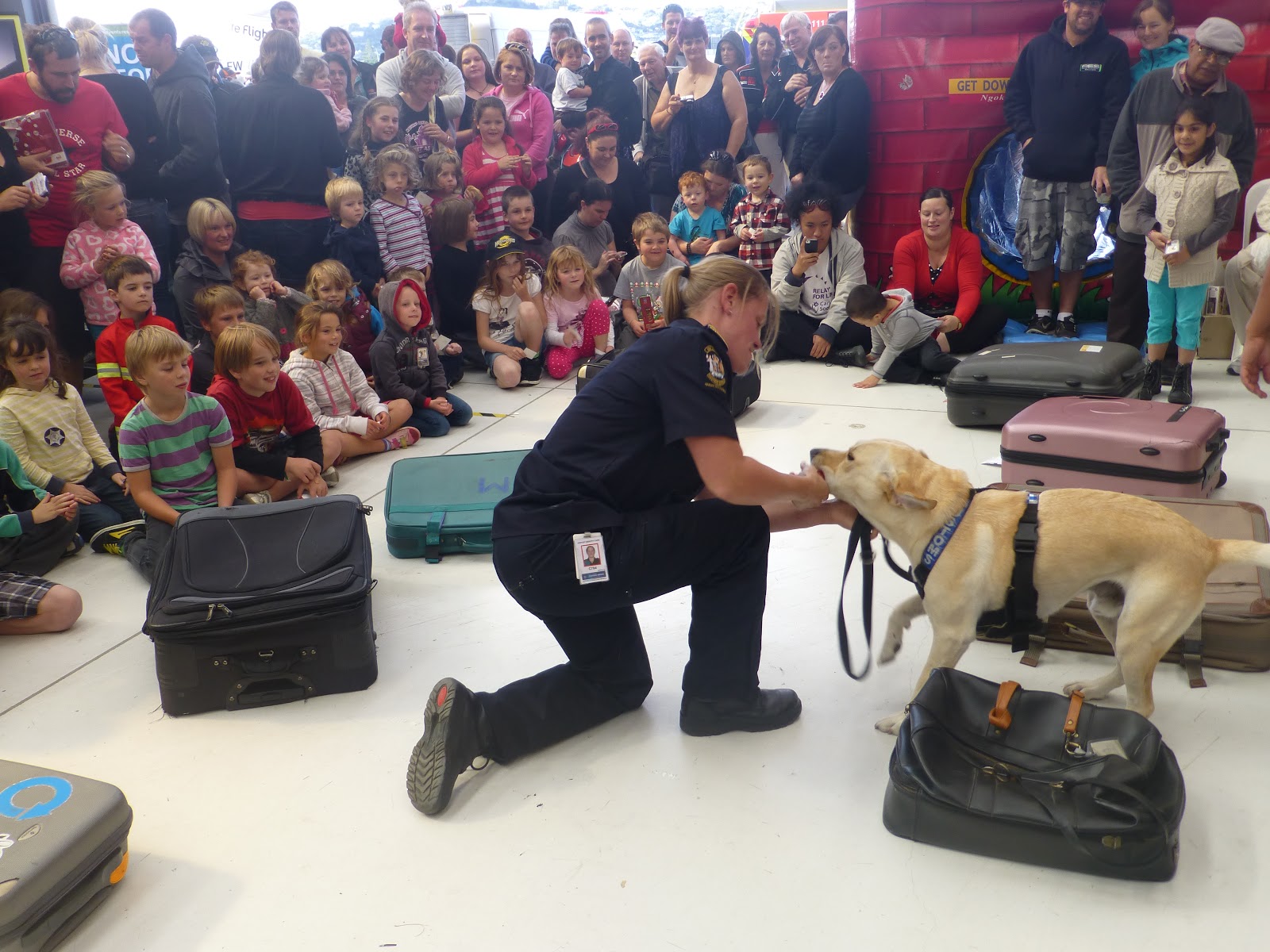 A number of activities take place during the open day. There was a demonstration of the helecopter winching someone from the top of a airport fire engine, a display from the airport fire service showing the distance that the engine can throw its water or a display from the NZ Custom’s dog Unit.