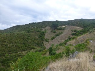 Following the track it will climb up towards the Tawatawa Ridge. Here there has been a lot of work to make the tracks wider and the climb a little easier. Also a lot of replanting has taken place. In the distance is a section that has some goats in. Yes the goats are being used to keep the area clear of vegetation.