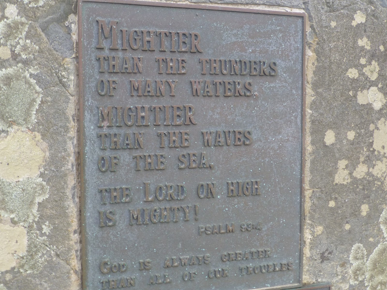 Sitting behind it is a piece if rock. On the side facing the sea is a small piece of Black Marble with the date’s of 1948-2004 and the persons name and a simple inscription.Whilst on the other side facing the valley is 2 plaque is a verse from a Psalm and a verse by Luke taken from the Bible.