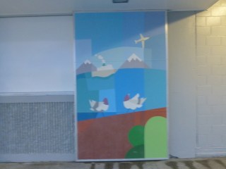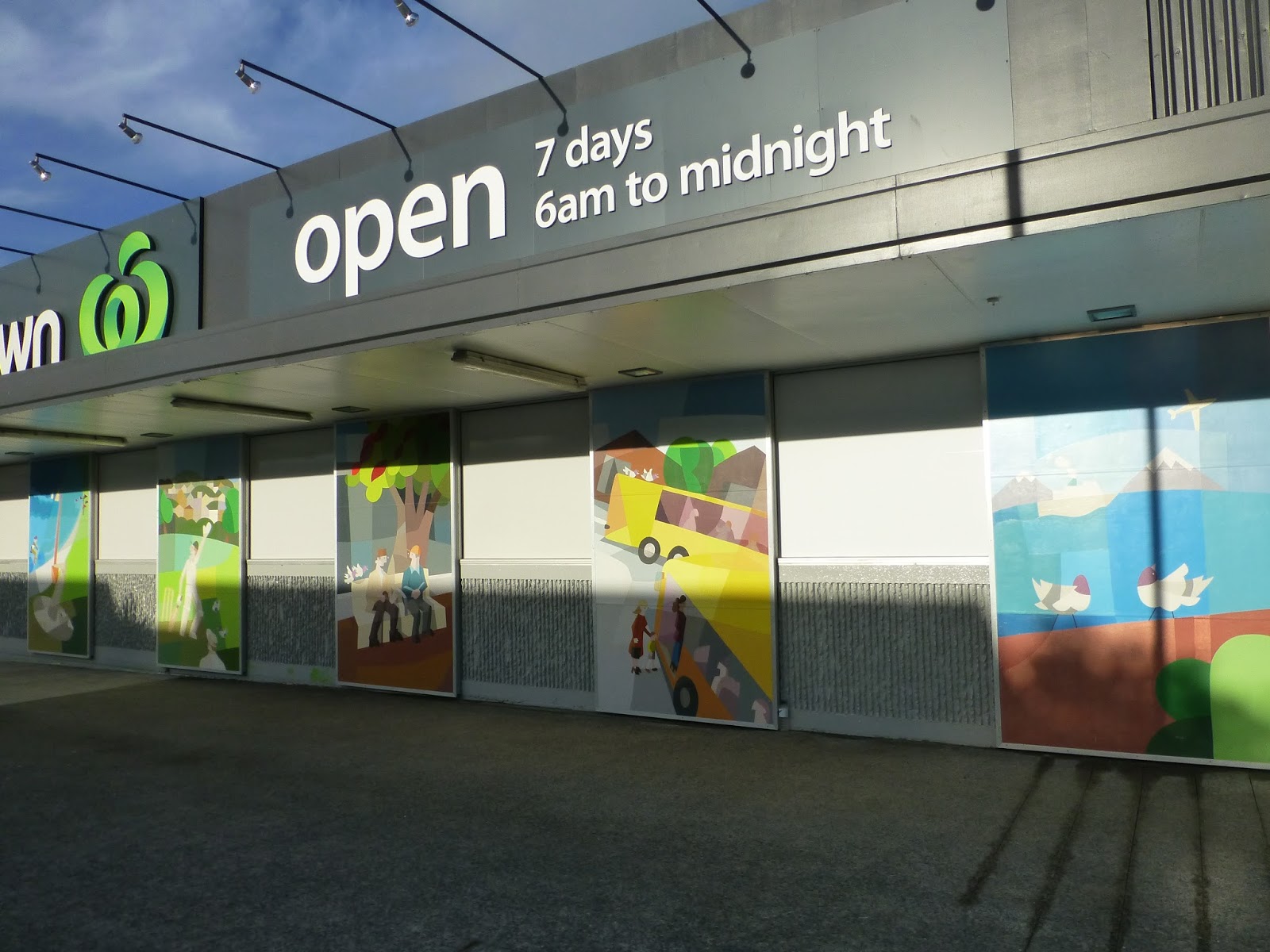As part of Klibirne’s High Street improvements 5 pictures were painted outside the Countdowns store. The 5 panels were used as advertising panels and when the store was converted from Woolworth’s the panels were painted grey and then left.