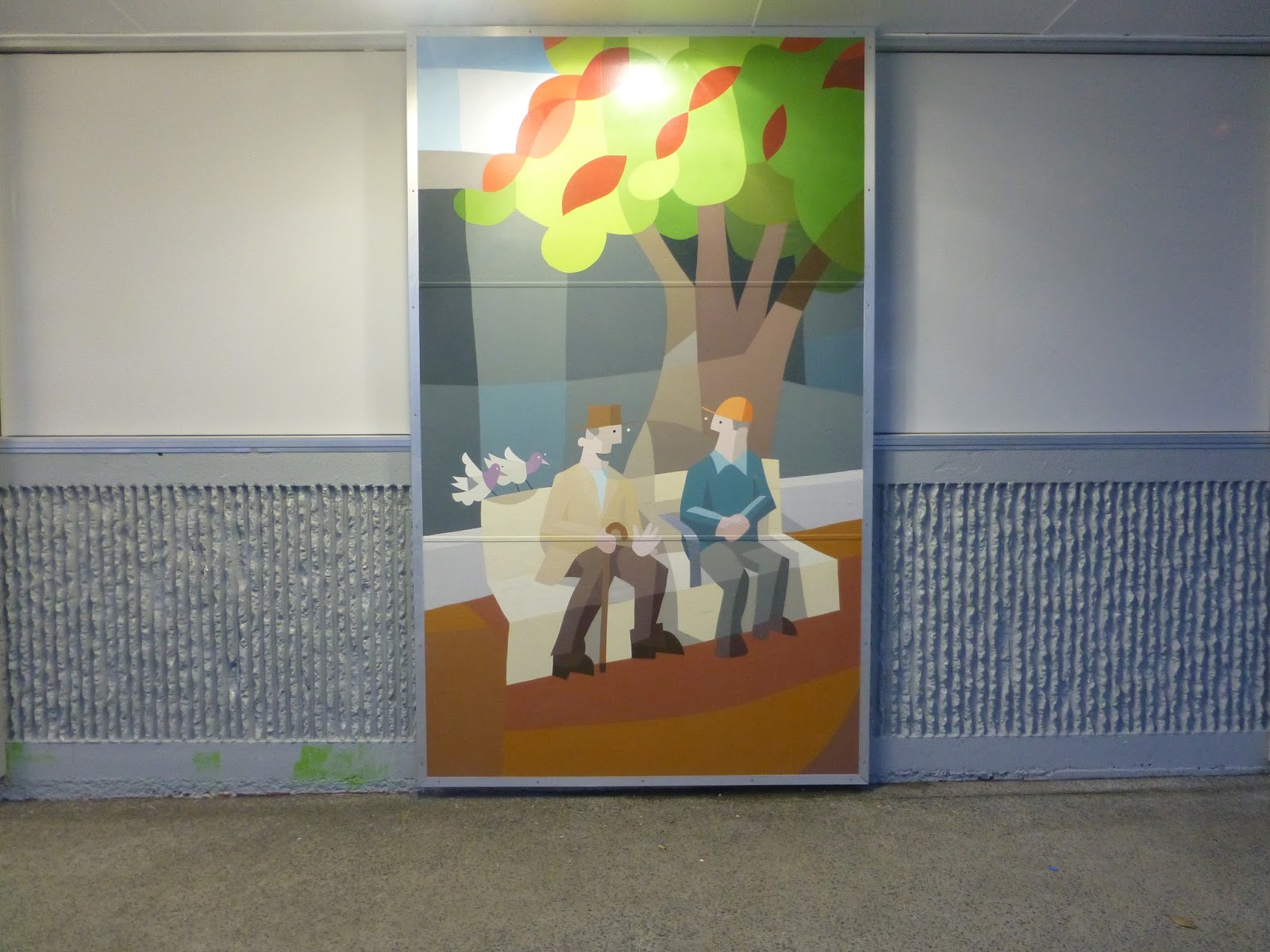 The panels were painted over a number of weeks and late evening when there was less foot traffic therefore avoiding people getting paint on them and room for the artist to work.
