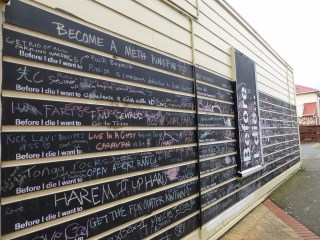 The wall has been going since the 15th September but is due to finish by the 2nd week of October 2013. So get down a take a look at those in the Newtown area would like to do Before They Die,