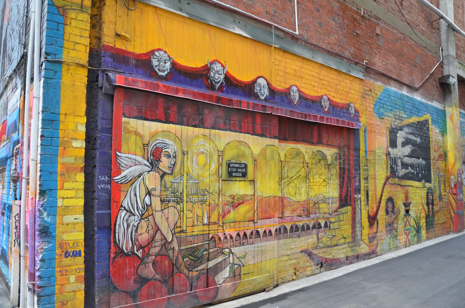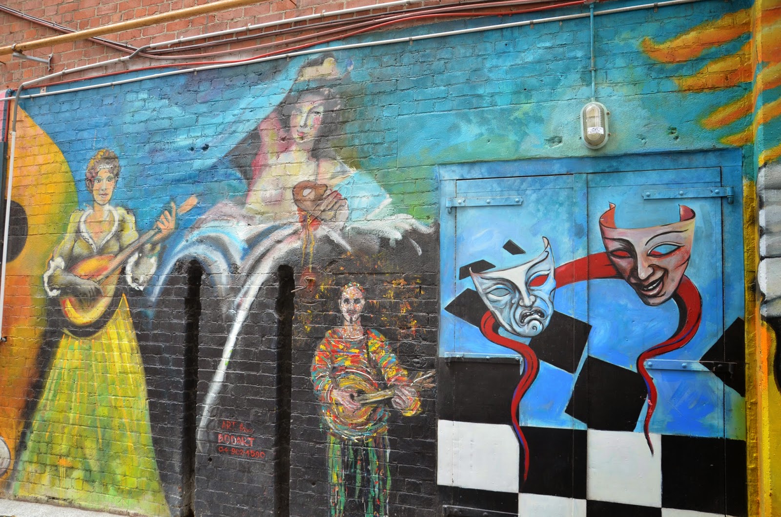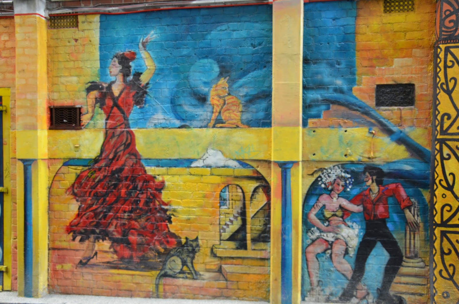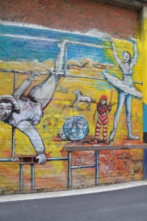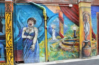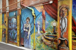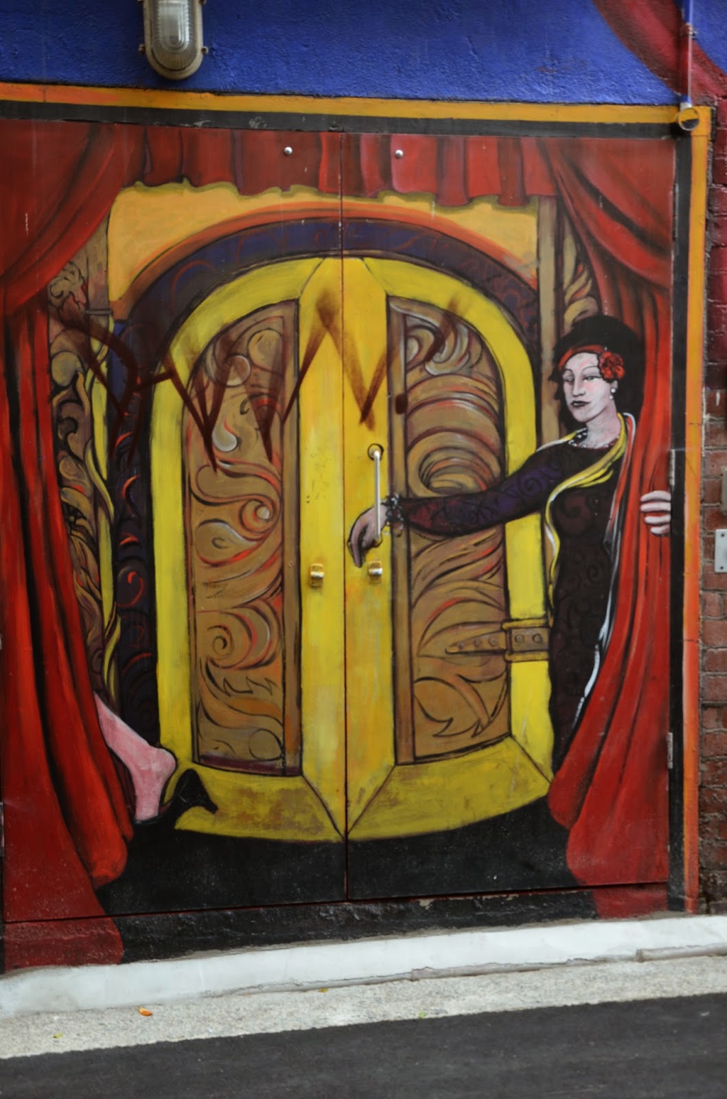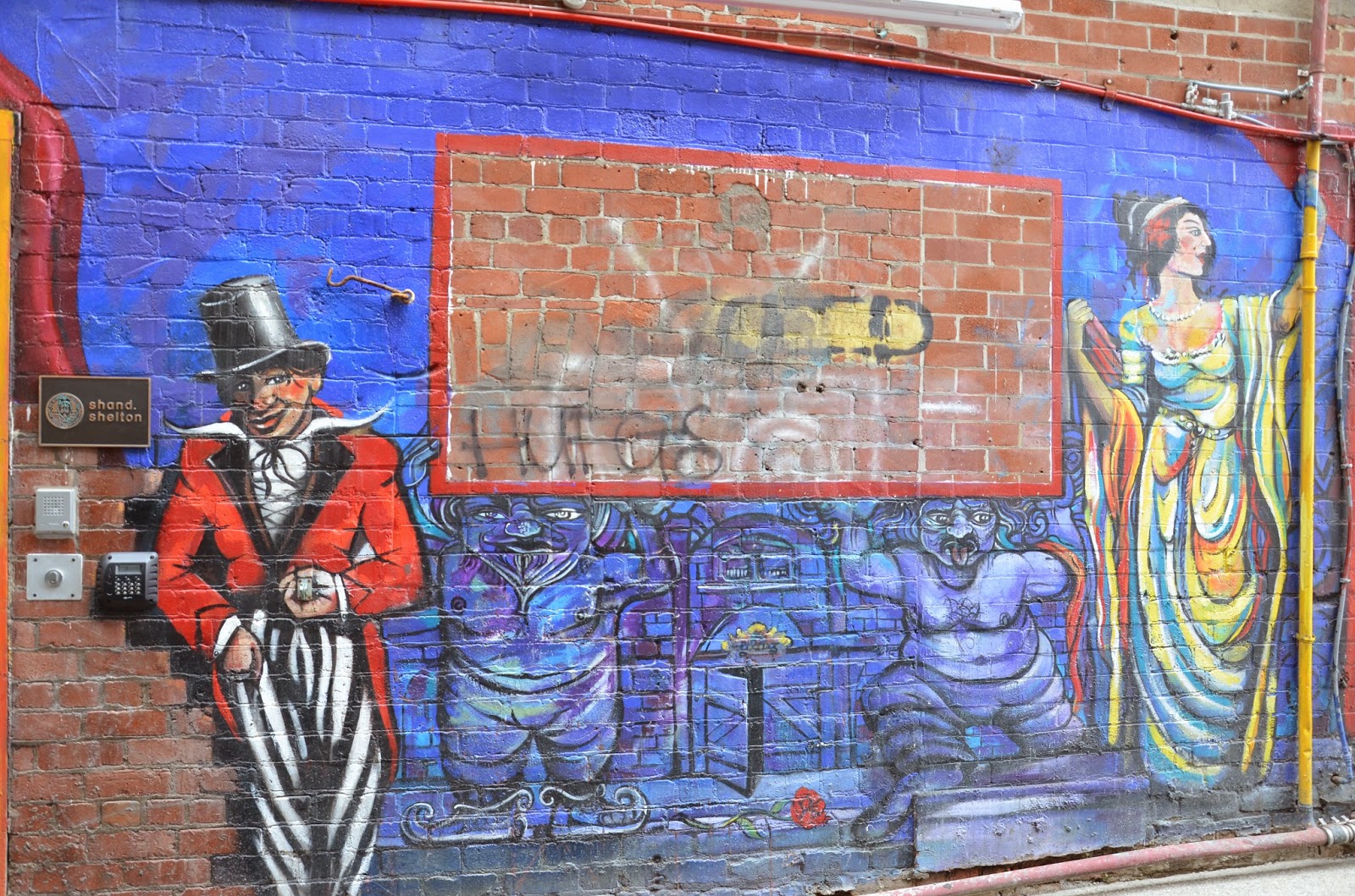 Sitting next to one side of Wellingtons Opera house,it run’s between Manners Street and Wakefield Street. Painted on the Opera House wall is a mural depicting the early days of entertainment.