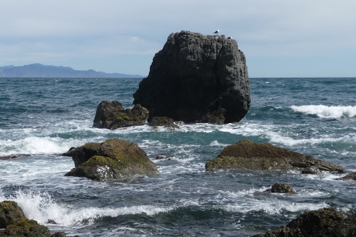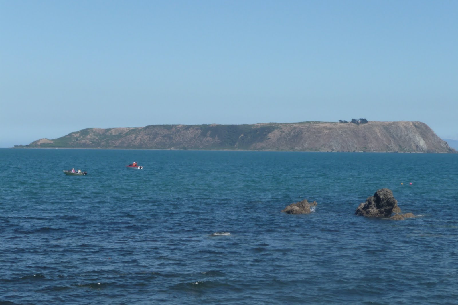 Follow the road and witha short climb to the top of the Oku Street Reserve. Here you get to see the Island that gives Island Bay its name.